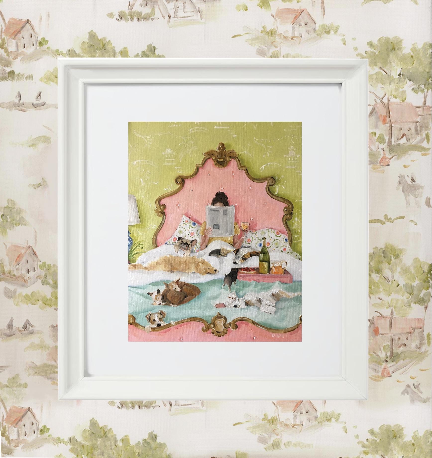 The nicest way to begin a Saturday morning is surrounded by furry friends and a little glass of champagne to toast the day. The perfect print for a cozy bedroom or as a gift for a special friend.