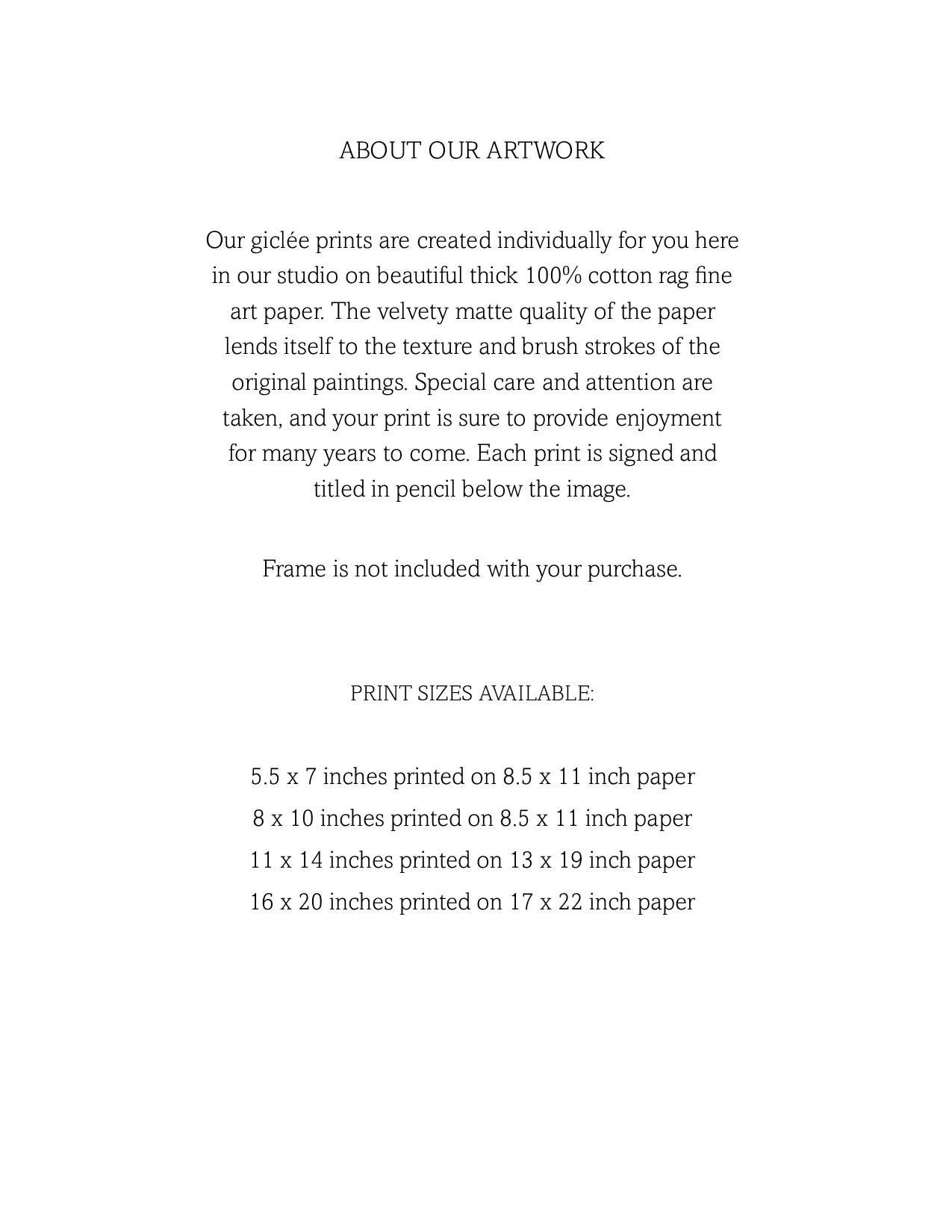 This is a fine art giclée print using vibrant Epson UltraChrome inks which capture the image beautifully on 100% cotton rag paper.